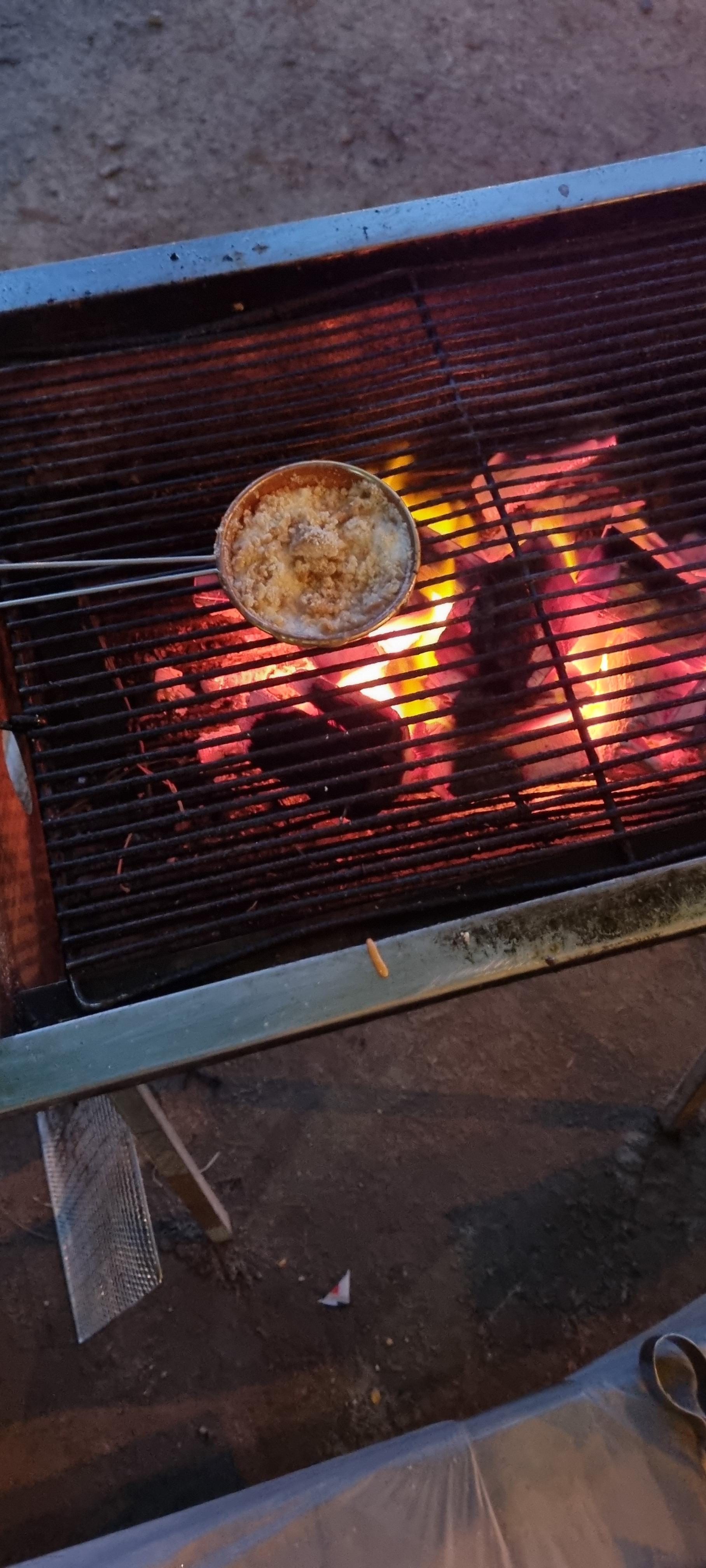 와이프가 아이들 주려고 달고나를 하려고 했다. 그런데 숯불 열기하고 설탕 녹는것과 온도가 안 맞나 보다. 설탕이 잘