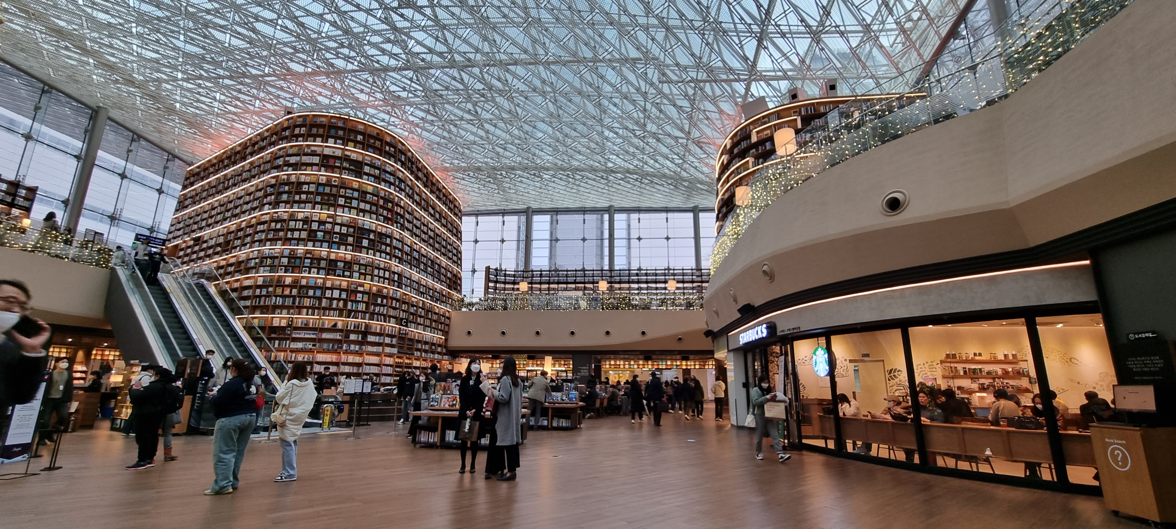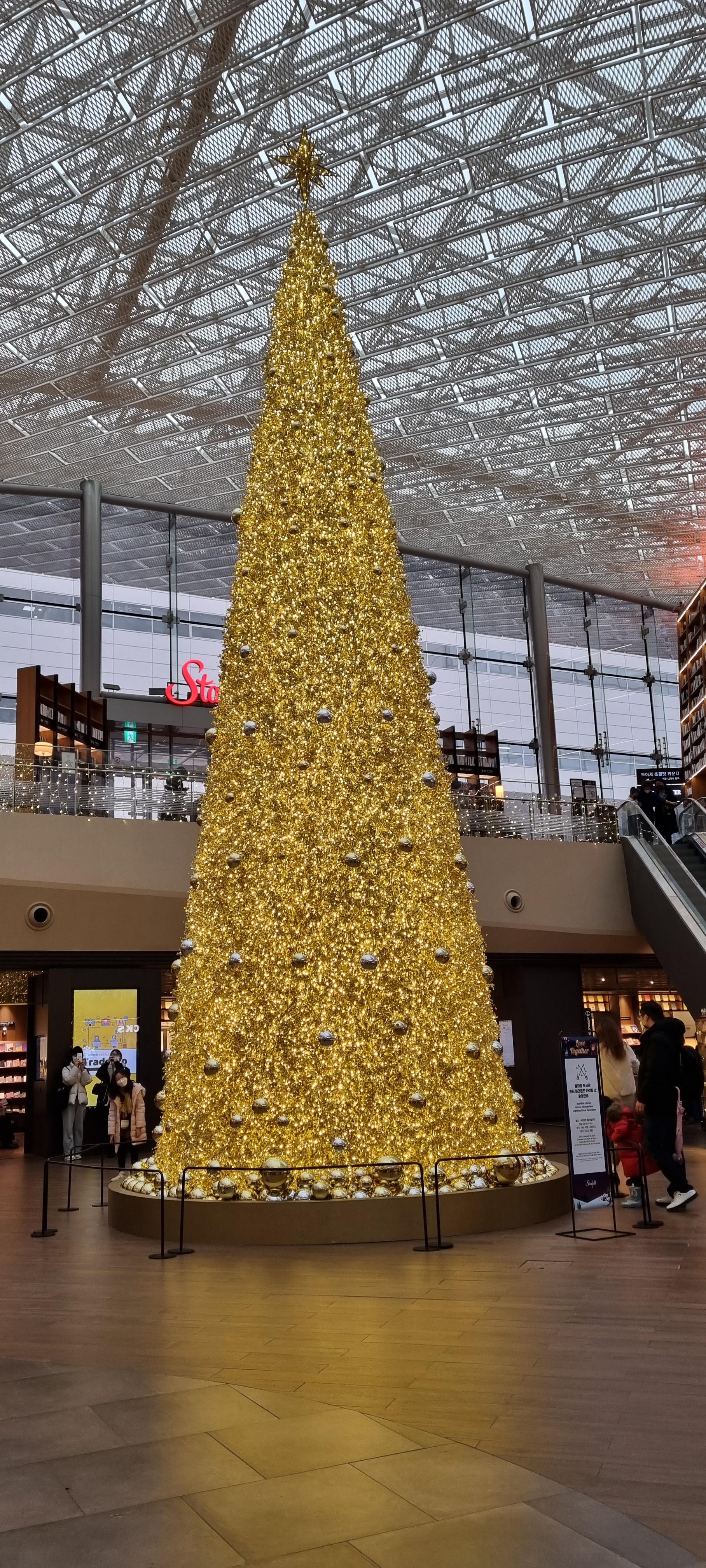 좀 더 코엑스를 둘러보다가 별마당 도서관을 찾았는데 크리스마스가 지나긴 했지만 금빛으로 빛나는 커다란 트리가 있어서 막내 사진을 찍어주었다. 여러 사람들이 기념 사진을 찍었는데 외국인이 꽤 많았다.