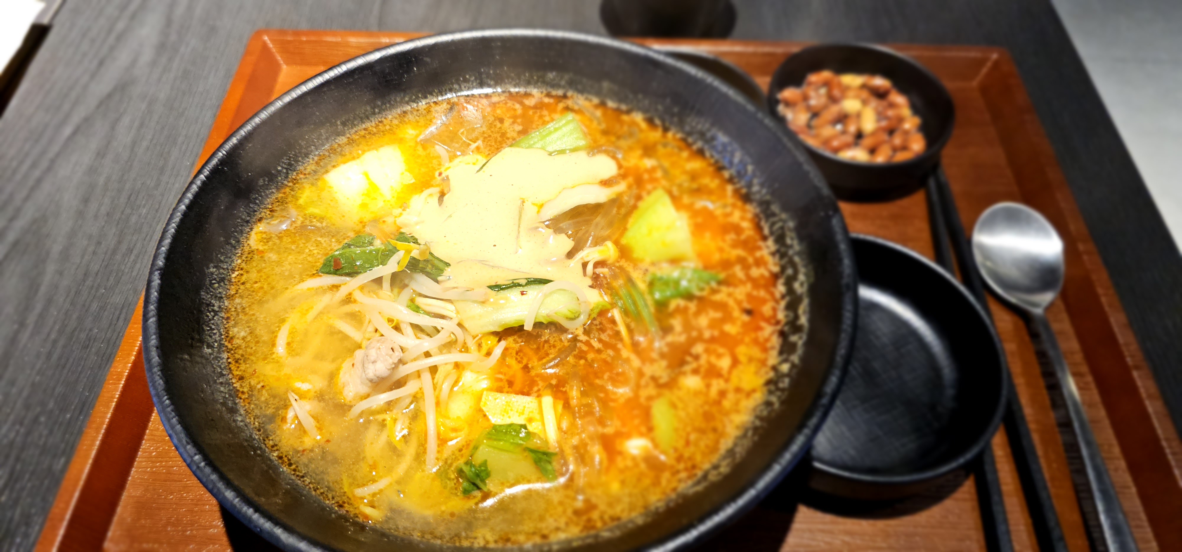 음식이 나왔다. 마라탕 위에 약간 갈색액이 있어 치즈를 녹인 것 같아 무슨 마라탕에 치즈를 넣었나 하고 속으로 생각했다.