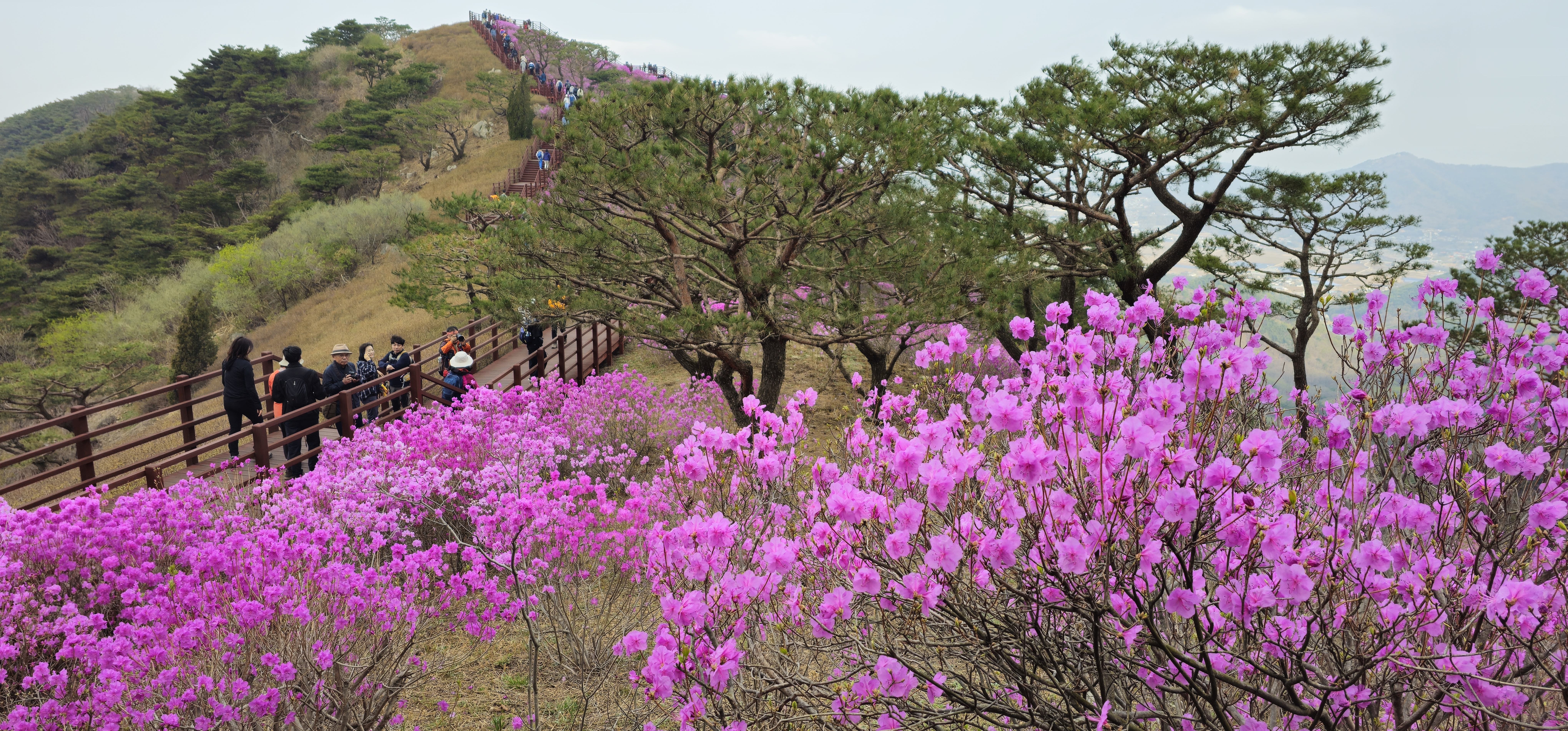나무데크길을 따라 진달래를 감상하였다. 유명산의 억새풀을 봤을때도 그렇고 식물의 군락지는 탄성을 자아내게 한다.