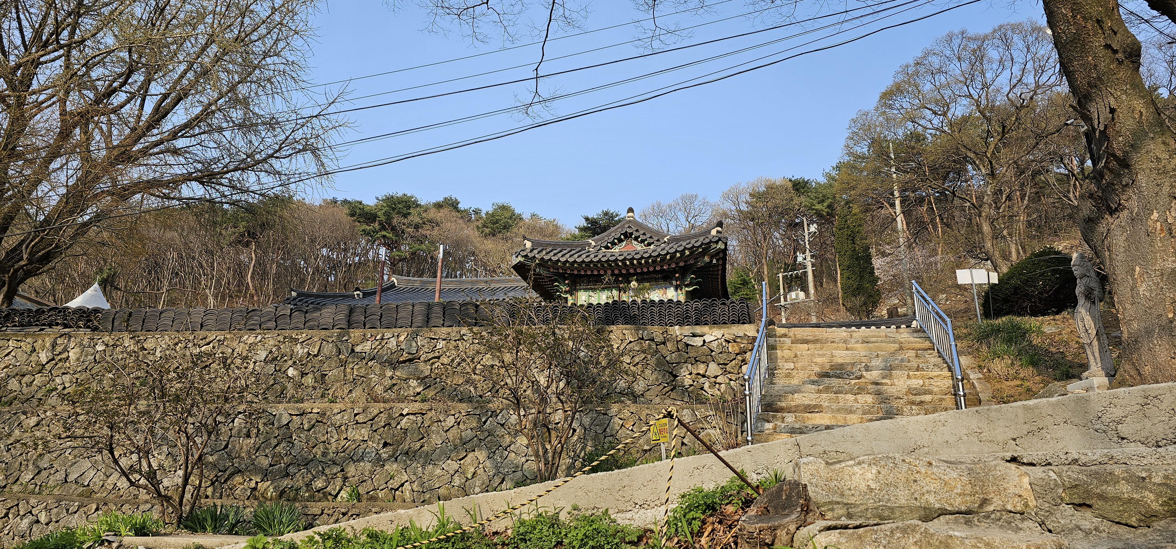 나무데크길 끝에는 커피숖이 있고 왼쪽으로 백련사 사찰이 있다. 등산하려면 커피숖을 지나 위쪽으로 나있는 길을 따라 올라가면 된다.